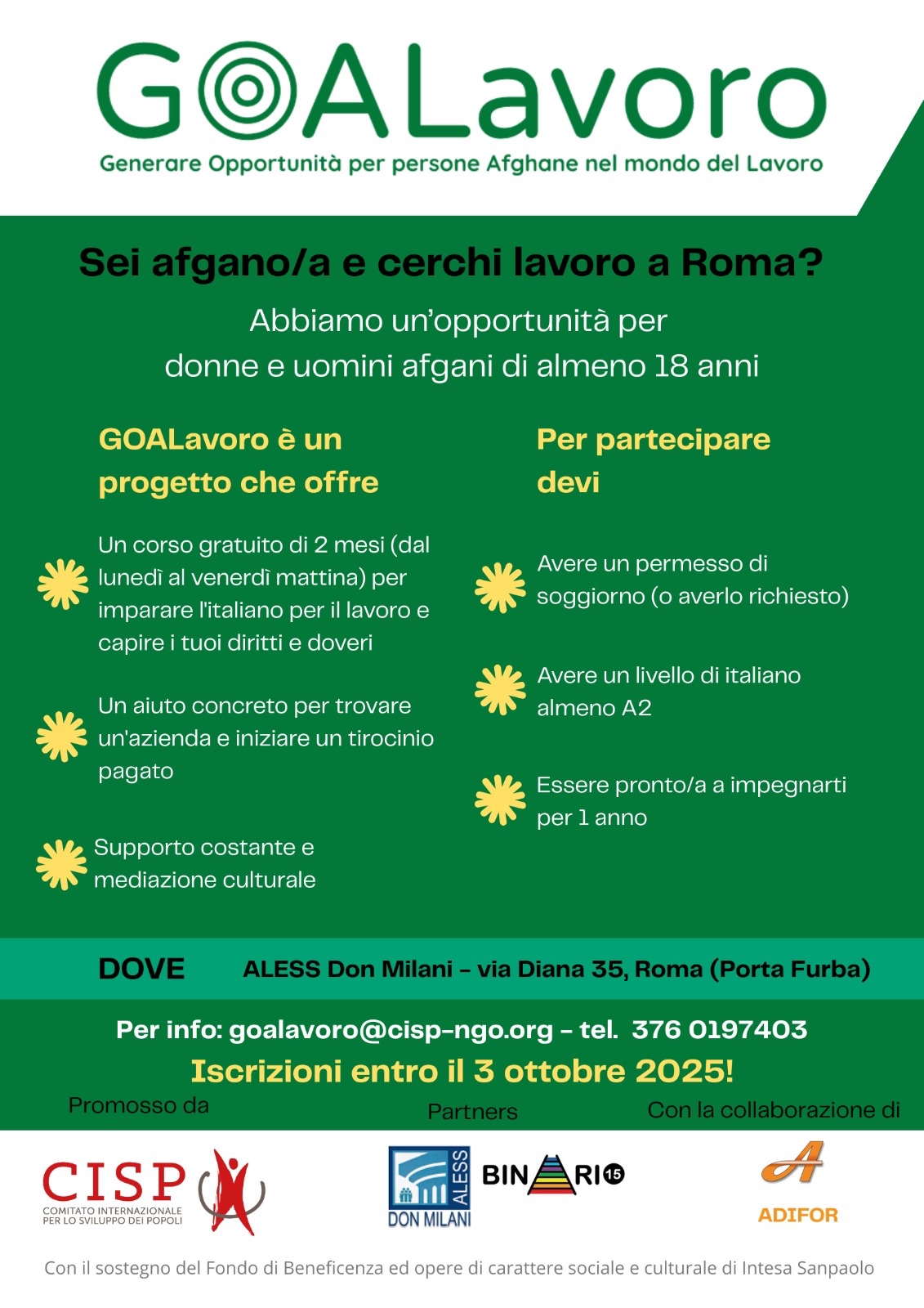 Migliorare l'efficacia dei meccanismi di integrazione e l'accesso all’occupazione di persone afgane rifugiate nel Lazio.