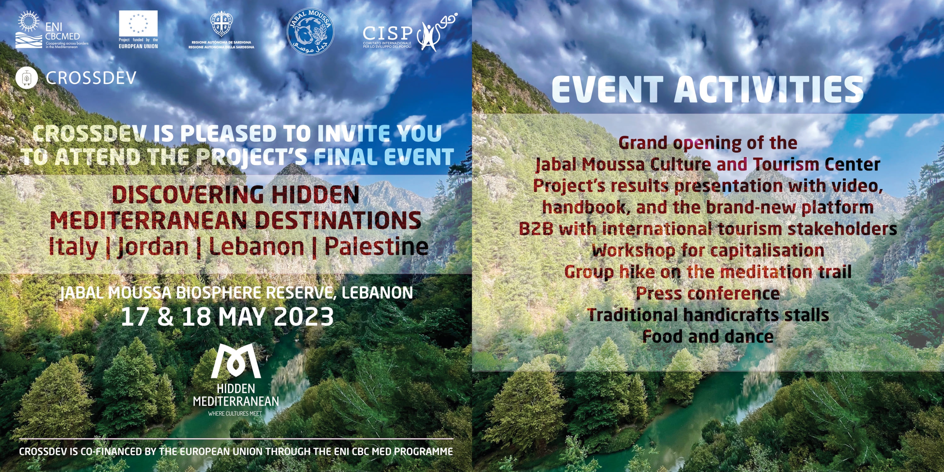 “Discovering Hidden Mediterranean Destinations”, l’evento finale del Progetto CROSSDEV, si terrà il 17 e 18 maggio 2023 alla Riserva della Biosfera di Jabal Moussa, in Libano, una delle cinque destinazioni sviluppate dal progetto.